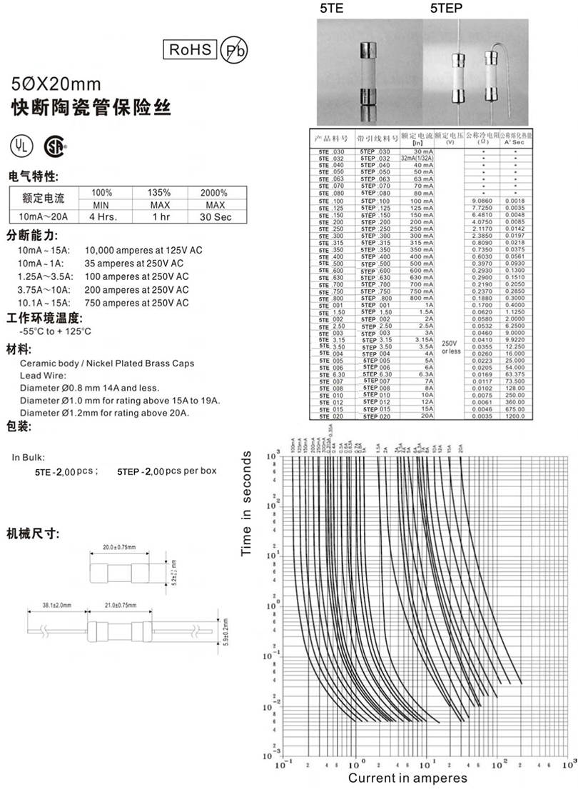 5x20mm陶瓷快斷保險絲
