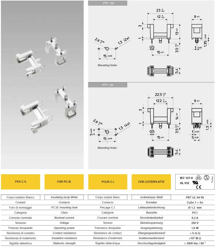 PTF60(PCB焊接保險絲座)