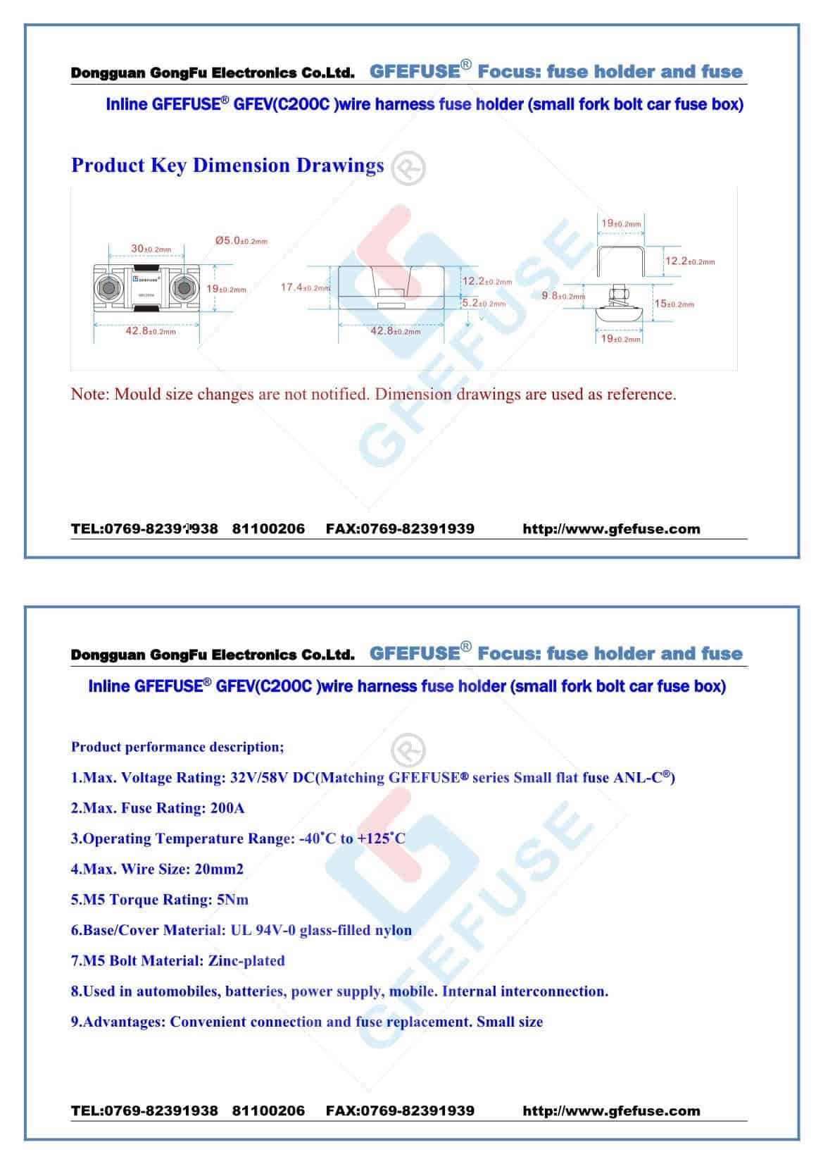 1.Max. Voltage Rating: 32V/58V DC(Matching GFEFUSE series Small flat fuse ANL-C)