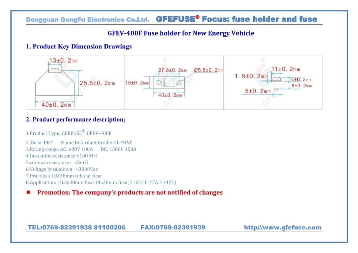 東莞市貢福電子有限公司專業製造銷售太陽能光伏熔斷器、新能源車用保險絲、微型保險絲、叉栓保險絲、汽車保險絲、高壓保險絲、貼片保險絲、陶瓷保險絲、汽車保險絲座、汽車熔斷器、突跳式溫控器、汽車過載保護器,保險絲座,汽車插片保險絲。插片保險絲座,叉栓保險絲座,叉栓保險絲盒,螺栓保險絲,螺栓保險絲座,低壓熔斷器.直流熔斷器,直流保險絲,車用保險絲,車用保險絲座等。產品通過UL CE CQC TUV REACH等認證。客戶遍布廣東、江蘇、東莞、上海等全國各地。