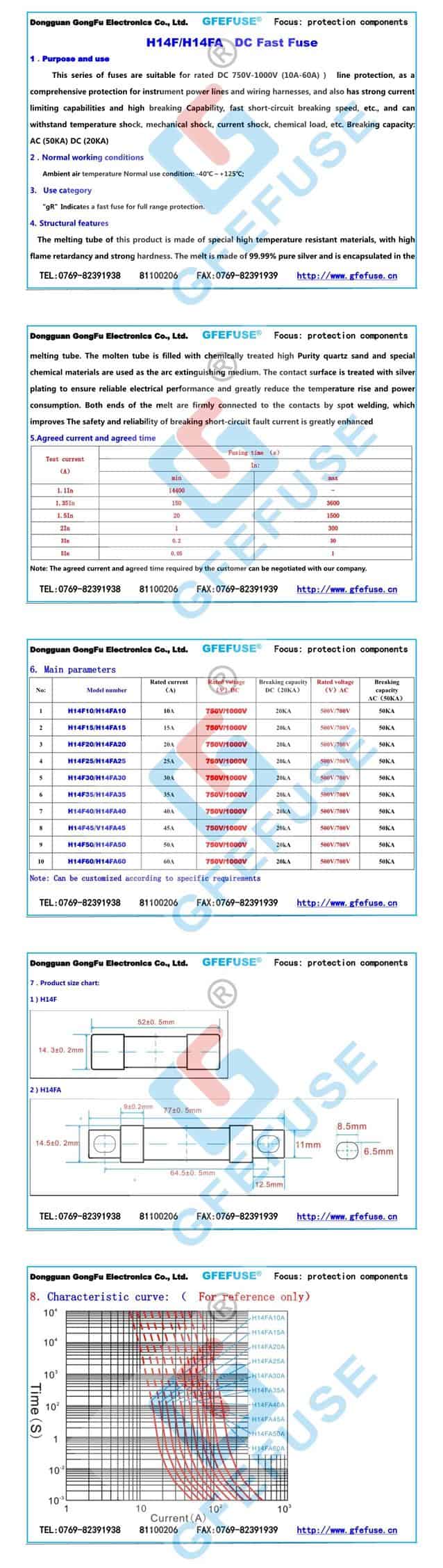 H14F/H14FA快速直流熔斷器10A-60A(750V/1000V)