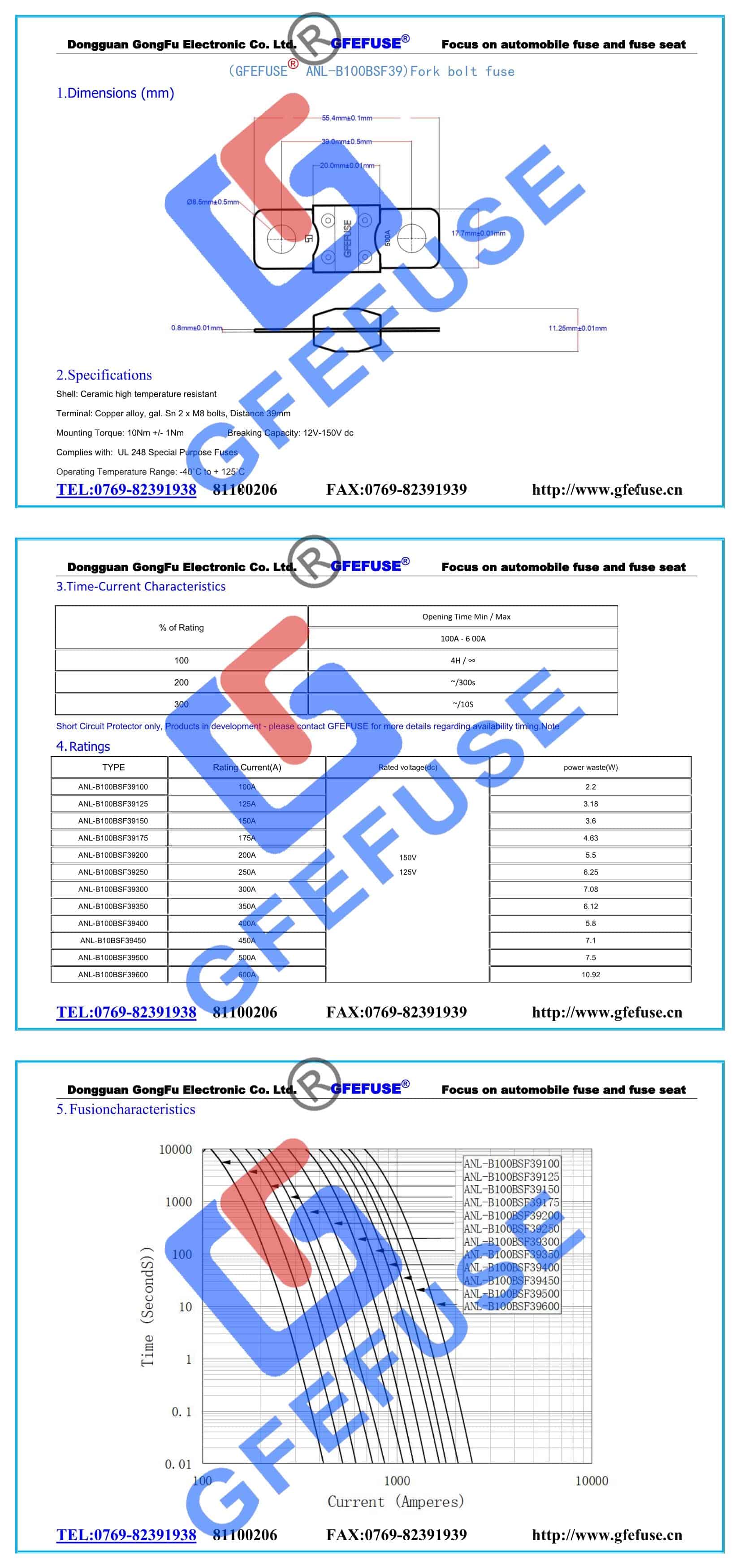 ANL-B100BSF39 100A-600A 125V150V陶瓷叉栓保險絲