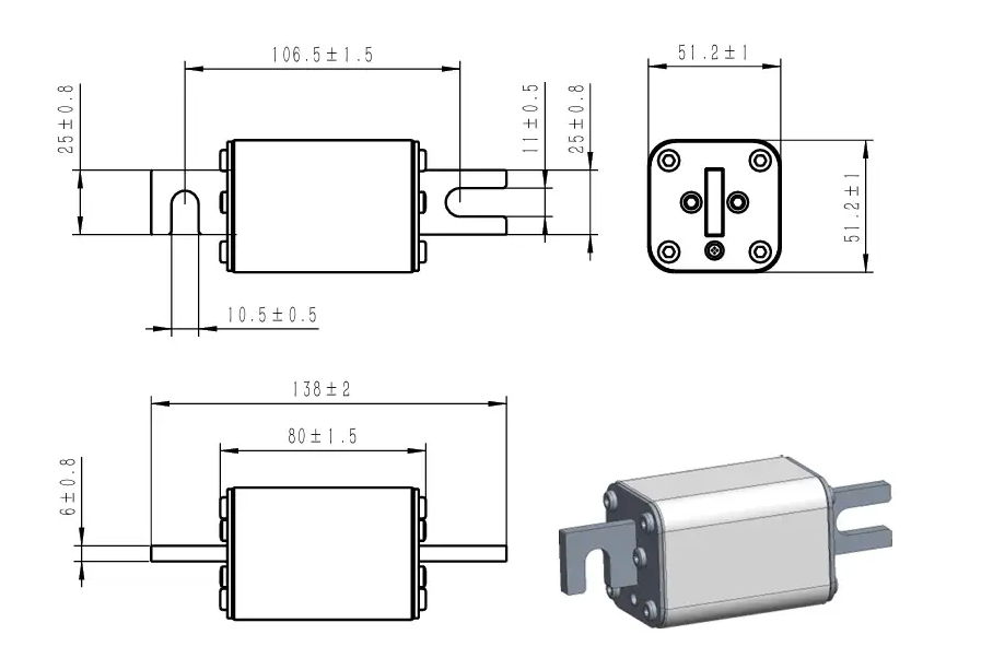 The GFEVT1000-K-51E Series high-voltage DC fuse is specially engineered for secure and efficient protection of DC circuits. Rated at 1000Vdc with current options from 100A to 630A, and an interrupting capacity of up to 50kA, it is suitable for demanding energy storage, photovoltaic, and industrial applications. The series ensures fast response to fault currents and reliable circuit isolation under harsh conditions.